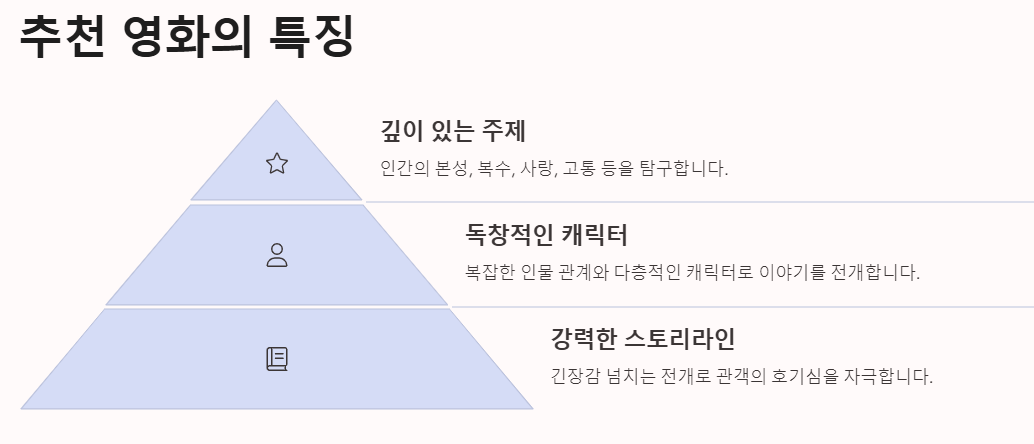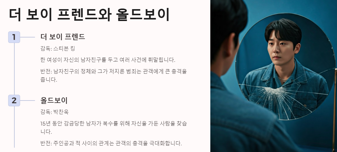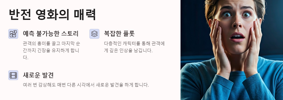 이 영화들은 단순히 반전만을 위한 것이 아니라, 인간의 본성, 복수, 사랑, 고통 등 깊이 있는 주제를 탐구합니다. 관객은 스토리를 따라가며 이러한 주제를 다시 생각해보게 됩니다.
