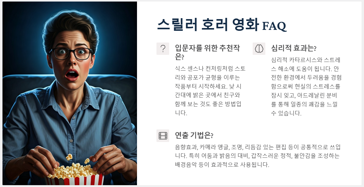 Q2: 스릴러 호러 영화는 어떤 심리적 효과를 주나요?