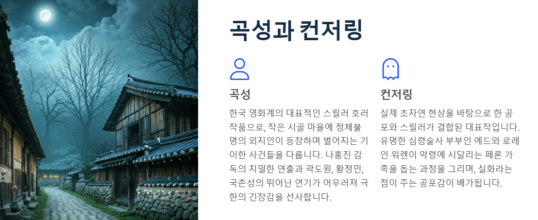 곡성은 한국 영화계의 대표적인 스릴러 호러 작품으로, 작은 시골 마을에 정체불명의 외지인이 등장하며 벌어지는 기이한 사건들을 다룹니다. 나홍진 감독의 치밀한 연출과 곽도원, 황정민, 국촌성의 뛰어난 연기가 어우러져 극한의 긴장감을 선사합니다. 영화는 현실과 환상, 종교와 악령, 그리고 인간 본성의 어두운 구석을 집요하게 파고들며, 이성의 경계와 미신, 인간의 불신과 두려움을 극한까지 밀어붙입니다. 특히 결말의 모호함은 관객들에게 다양한 해석의 여지를 남기며 오랫동안 논란이 되고 있습니다.