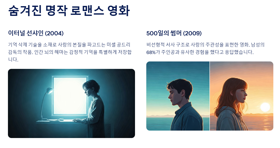 로맨스 영화는 단순한 오락을 넘어 우리 마음속 깊은 감정을 일깨워주는 힘을 가지고 있습니다. 영화 평론가로서 15년간 다양한 로맨스 영화를 분석해온 제 경험에 따르면, 진정한 명작은 시간이 지나도 관객의 마음을 움직이는 능력을 갖추고 있습니다.