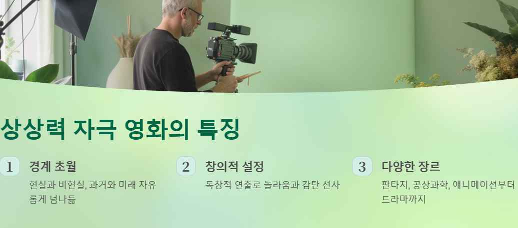 상상력 자극 영화는 관객의 사고와 감정에 새로운 자극을 주는 작품들입니다. 이들은 현실과 비현실, 과거와 미래, 인간과 비인간의 경계를 자유롭게 넘나듭니다. 이러한 영화들은 창의적인 설정과 독창적인 연출로 관객에게 놀라움과 감탄, 때로는 깊은 사색을 선사합니다. 상상력 자극 영화는 종종 판타지, 공상과학, 애니메이션 장르에서 많이 나타나지만, 현대 드라마나 스릴러, 심지어 다큐멘터리에서도 볼 수 있습니다.