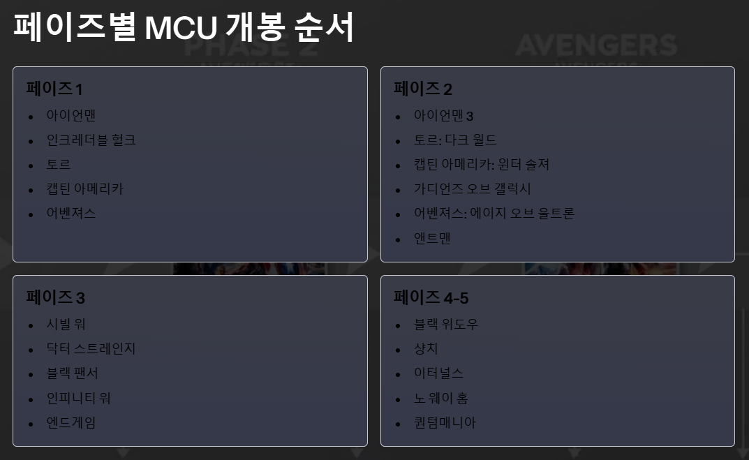 페이즈별 MCU 개봉 순서